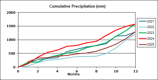 The temperatures for Autumn (September, October and November) were slightly disappointing though fairly average while the rainfall registered the start of our usual rainy season and the year climaxed with the heavy December rainfall before a final week that was dry and cold.