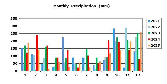 The temperatures for Autumn (September, October and November) were slightly disappointing though fairly average while the rainfall registered the start of our usual rainy season and the year climaxed with the heavy December rainfall before a final week that was dry and cold.