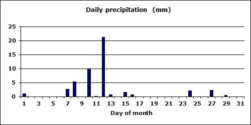 The day-time temperatures fluctuated between mild and fairly warm while the nights were regularly fairly cold but never freezing. However on the last day of the month, we had a rather strange but very welcome hot spell in the middle of the day.