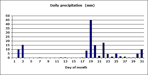 As we moved into our traditionally wettest few months (October to January), October began with two wet days but the next two weeks were almost totally dry. However the air pressure then fell dramatically and there were some very wet days, especially the 19th, and then the last week produced more rain each day.