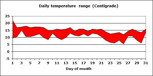 Temperatures gradually decreased as the month progressed but there was no really cold weather even at night and the last few days of the month were actually fairly mild.
